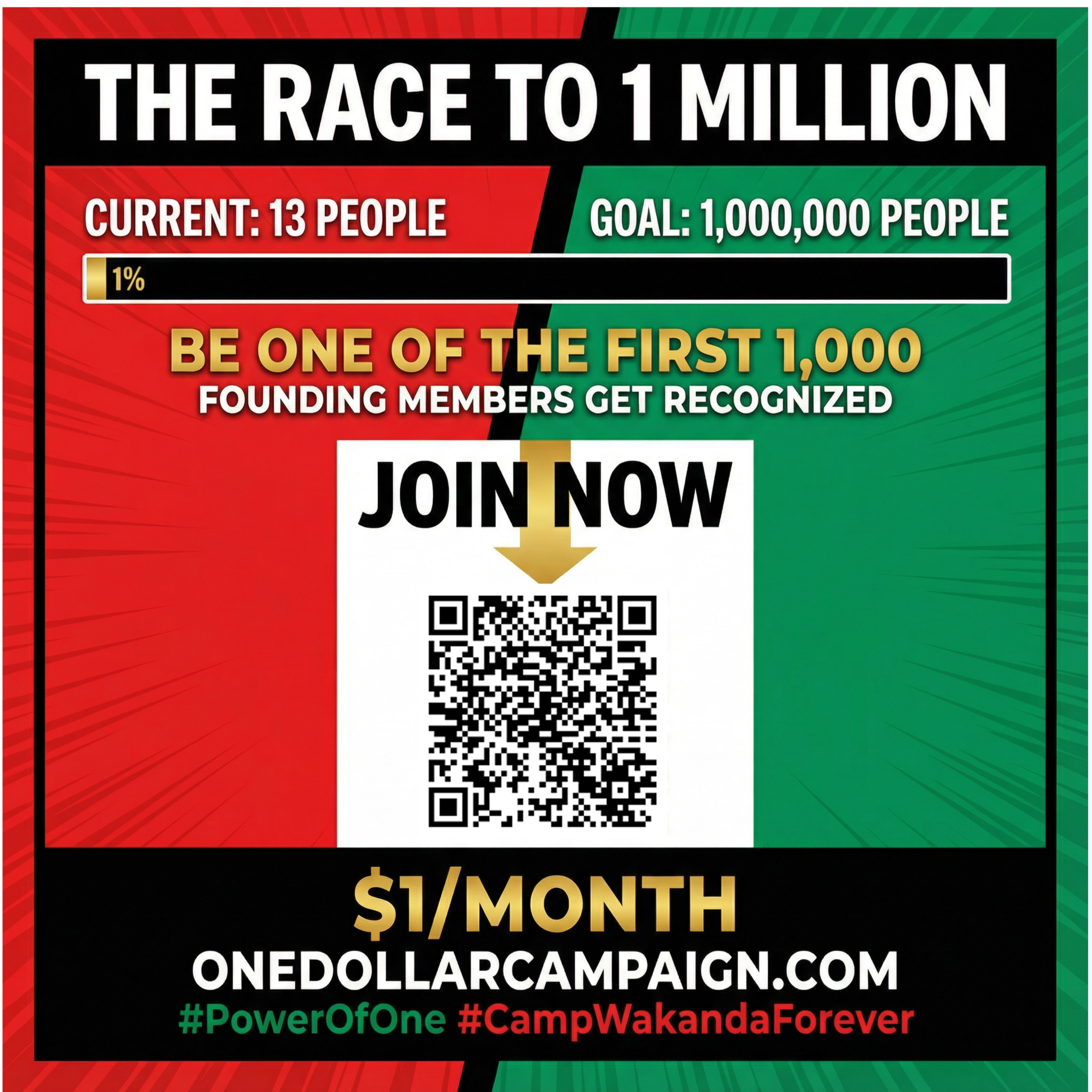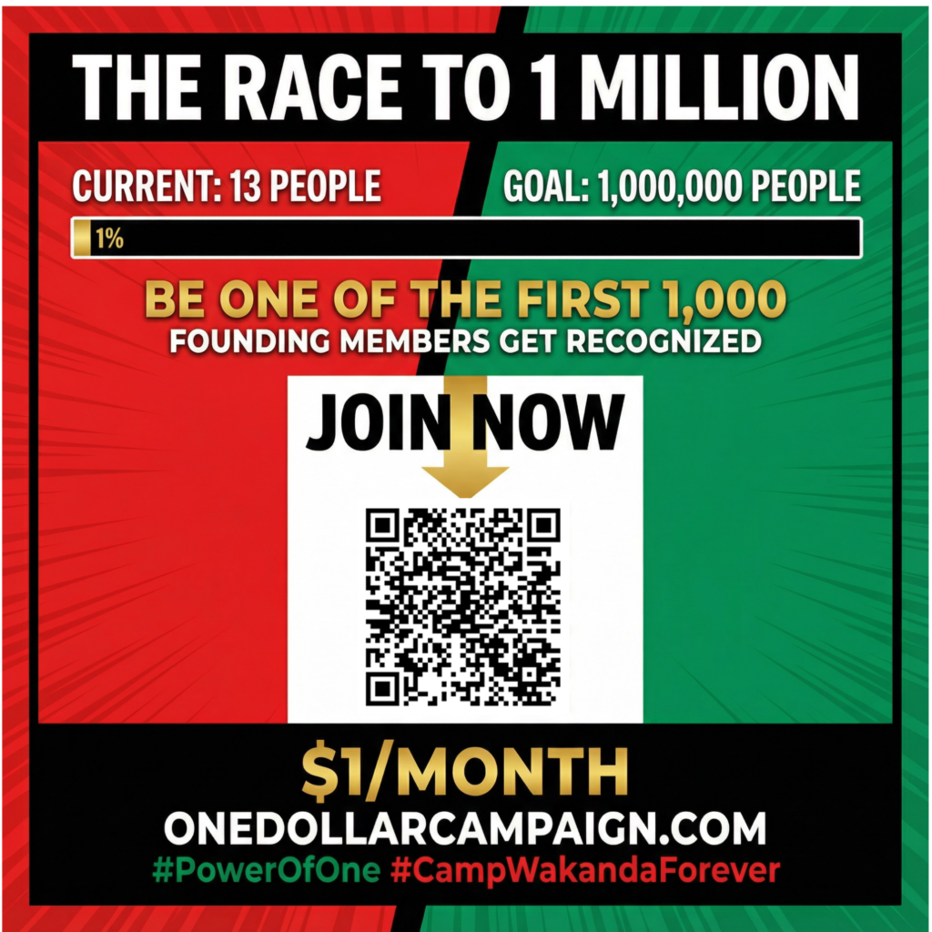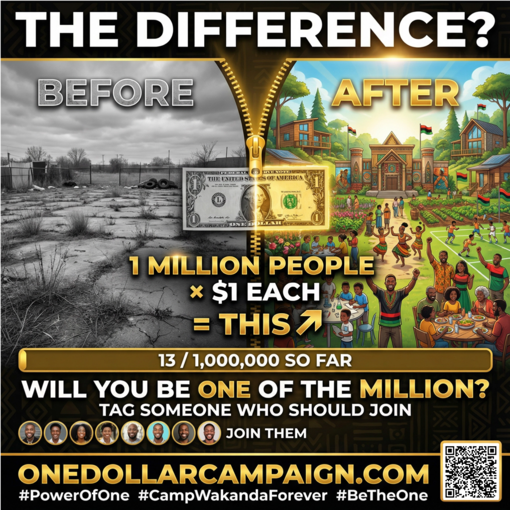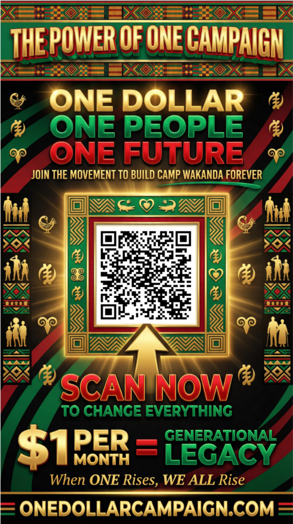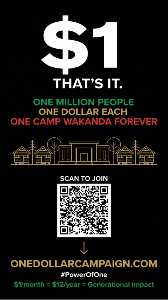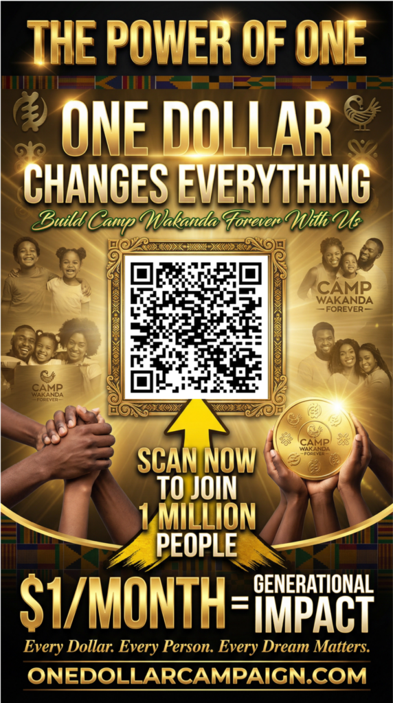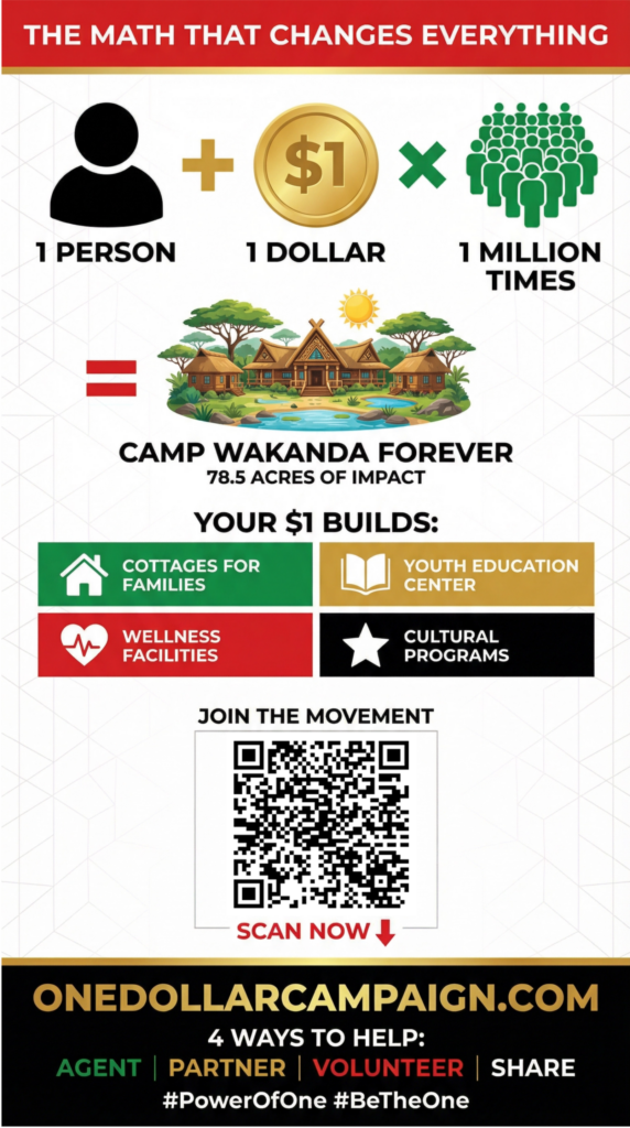 Getting involved in the Power of One Campaign is bigger than giving it’s about showing up for the future we keep talking about. When you volunteer, share posts, invite friends, and help spread the message, you become part of the engine that moves this vision forward. A simple share can reach someone who’s been waiting for a purpose; a few hours of volunteering can strengthen a whole event; one conversation can turn into a new team, a new donor, a new partner, a new opportunity. Camp Wakanda Forever is being built by the people, for the people and the most powerful thing you can contribute is your presence, your skills, your voice, and your consistency. If you believe where the impossible is possible, then don’t just watch the movement help drive it.